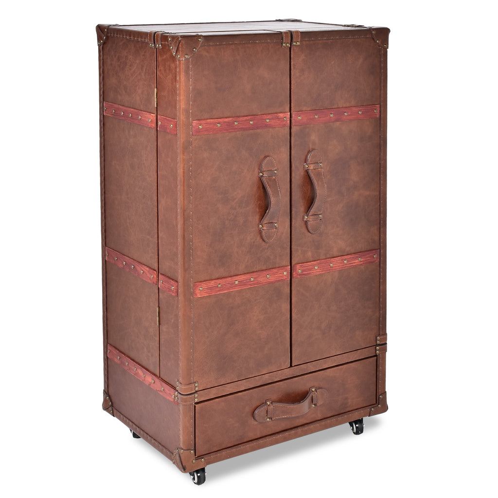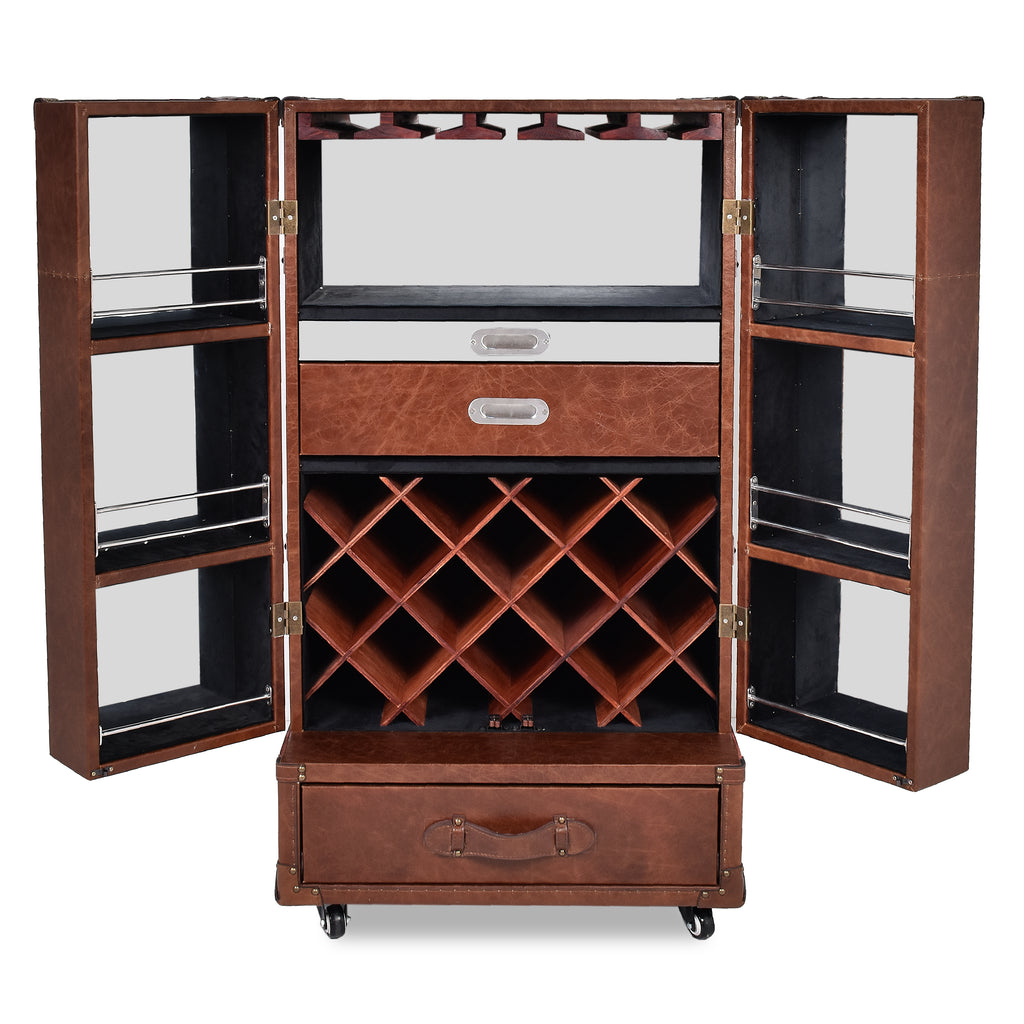 Lancaster Vintage Leather Trunk Wine Cabinet