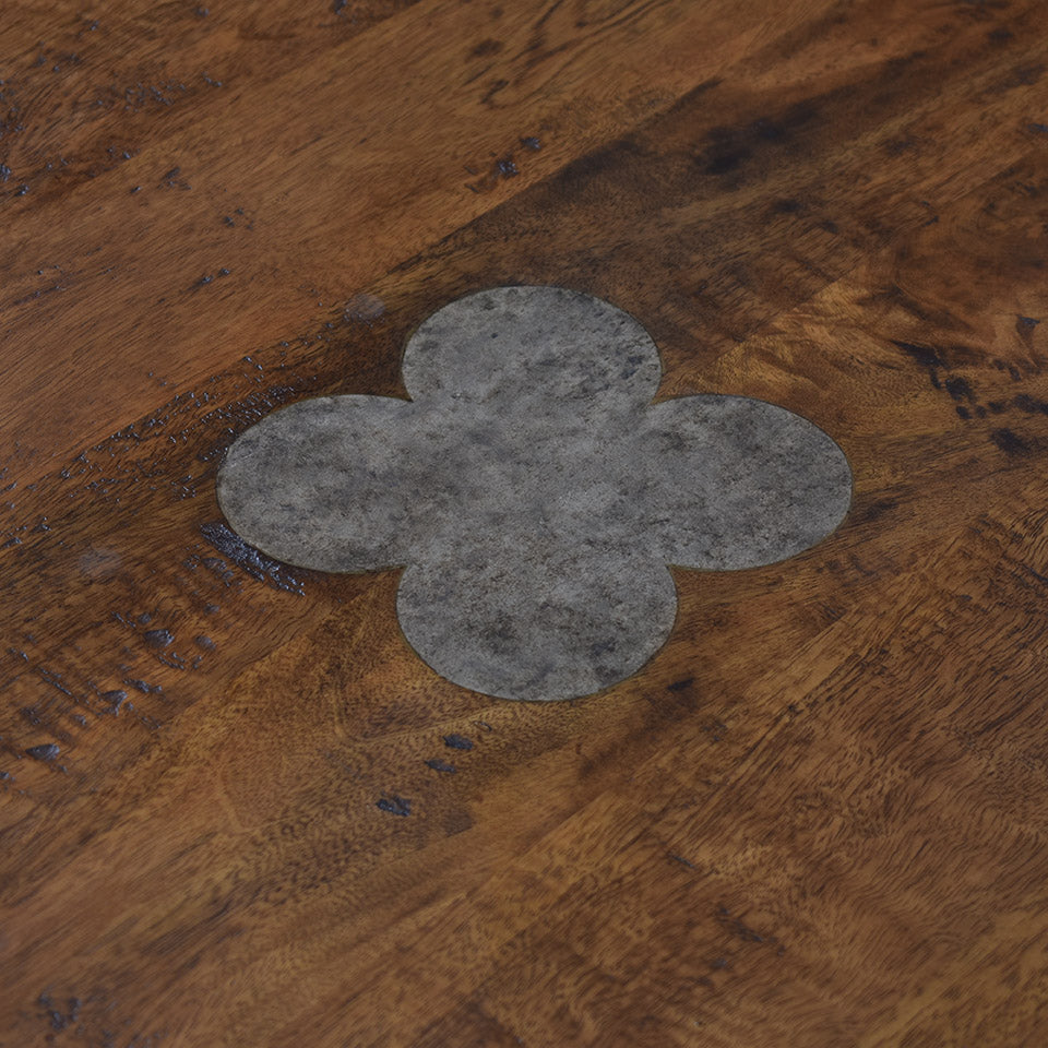 The clover inlay adds a touch of refined elegance to its design. This intricate pattern is meticulously crafted, showcasing the skill and artistry involved in its creation. The clover motif not only enhances the table's aesthetic appeal but also provides a unique focal point that draws the eye and elevates the overall ambiance of any dining space.