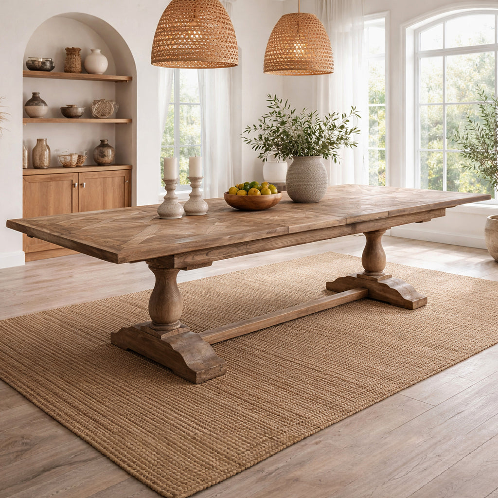 Old Elm Double Extension Dining Table - Parquetry Top