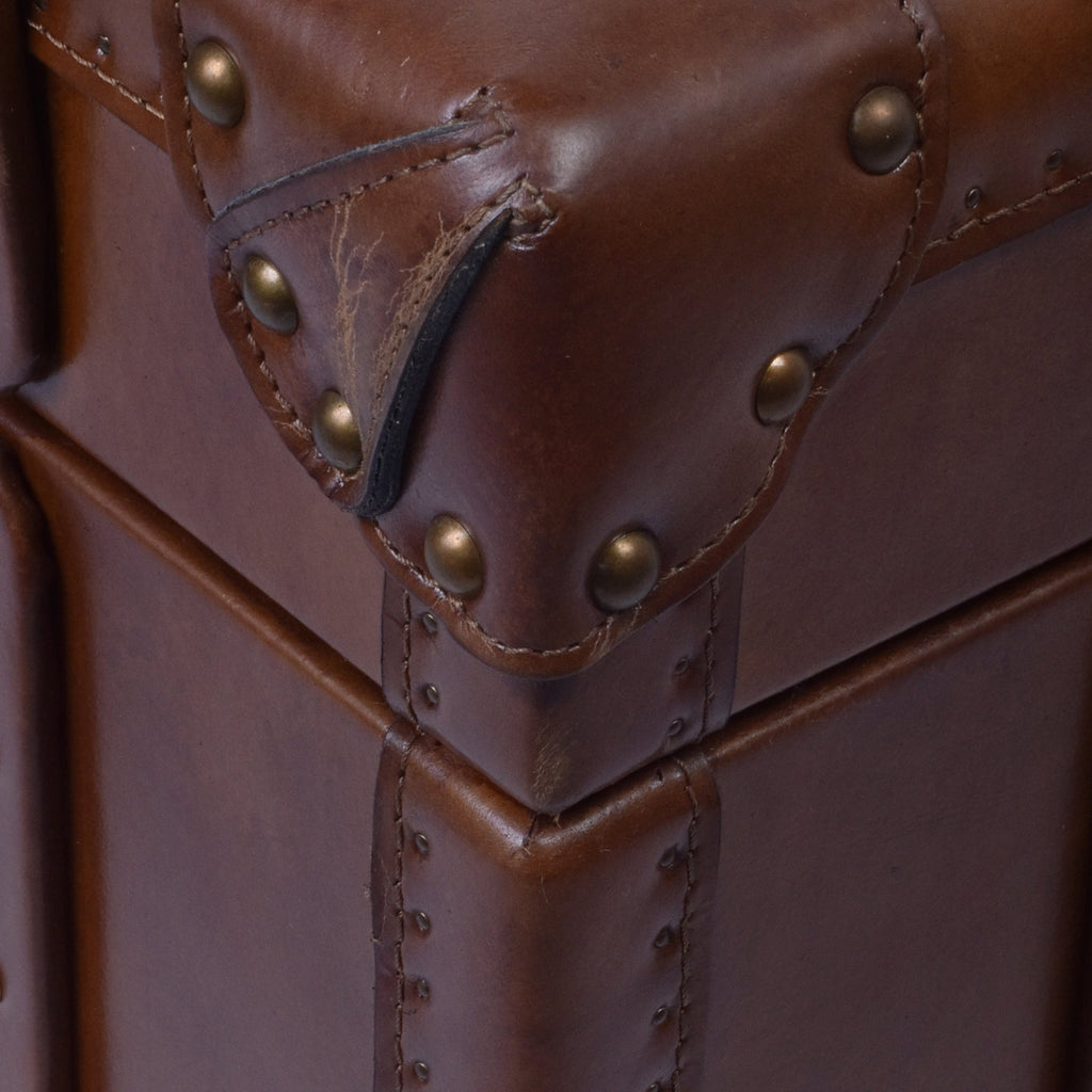 This item is upholstered in our signature, hand aged leather. We utilize only the best cuts of South American, top grain cowhide. The leather is dyed using natural, semi aniline dyes. Each piece has been hand-worked to give it a vintage look and feel. This includes signs of age like cracking and distressing. Every item will have its own characteristics and markings, making it unique. As this leather is hand-made, some colour variation can occur between pieces. Our leather is designed to age beautifully with time. For more information about caring for our leather products, Read Our New Blog: How to Care for Vintage Leather