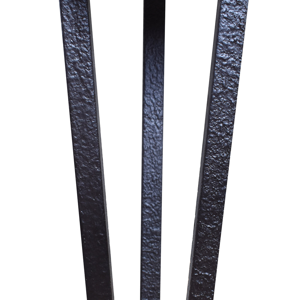 The textured iron hairpin legs bring a sleek industrial edge to the design, balancing rustic elements with modern flair. Their sturdy yet minimalist structure adds visual lightness while providing reliable support.