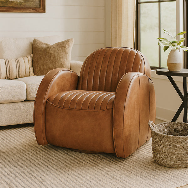 Art Deco Club Leather Swivel Chair