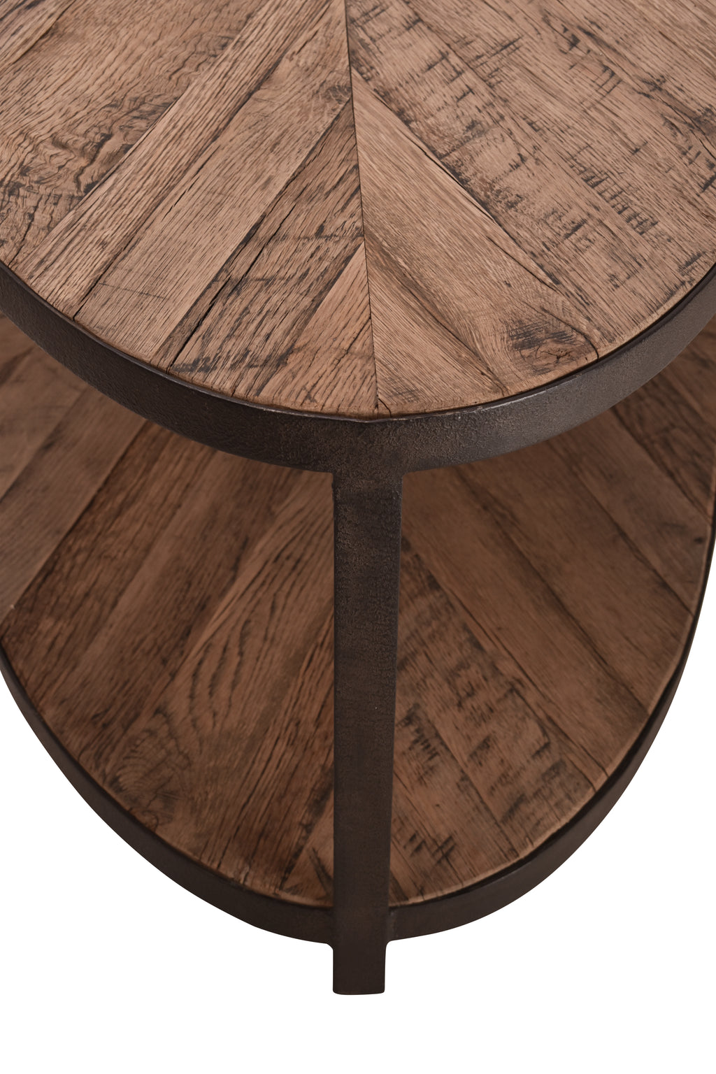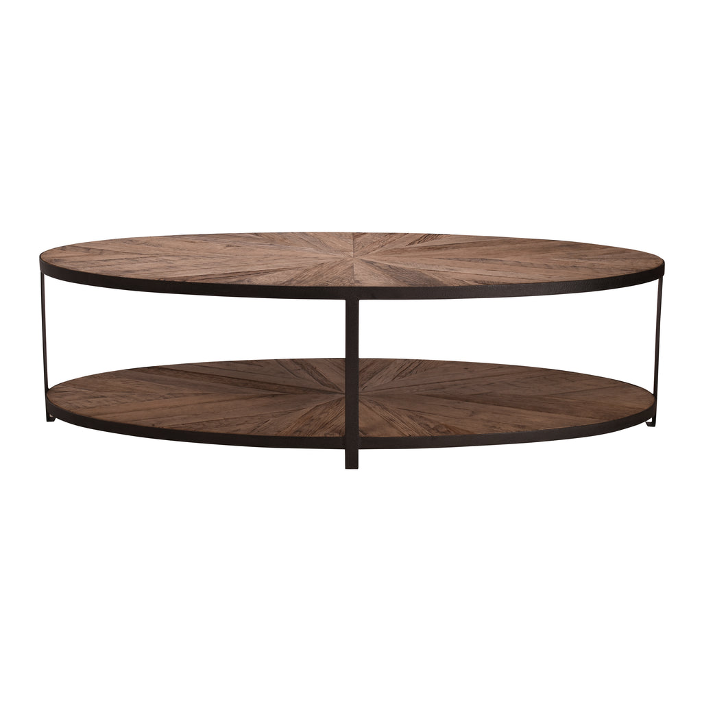 The Captain's XL Reclaimed Timber Coffee Table is a stunning fusion of natural beauty and industrial charm. Crafted from reclaimed elm wood, each piece of this table showcases its unique knots, grain patterns, and imperfections, making it a truly one-of-a-kind addition to any living space. The oval shape adds a touch of elegance and sophistication, while the rustic iron frame complements the organic nature of the wood, creating a harmonious balance between rugged and refined.