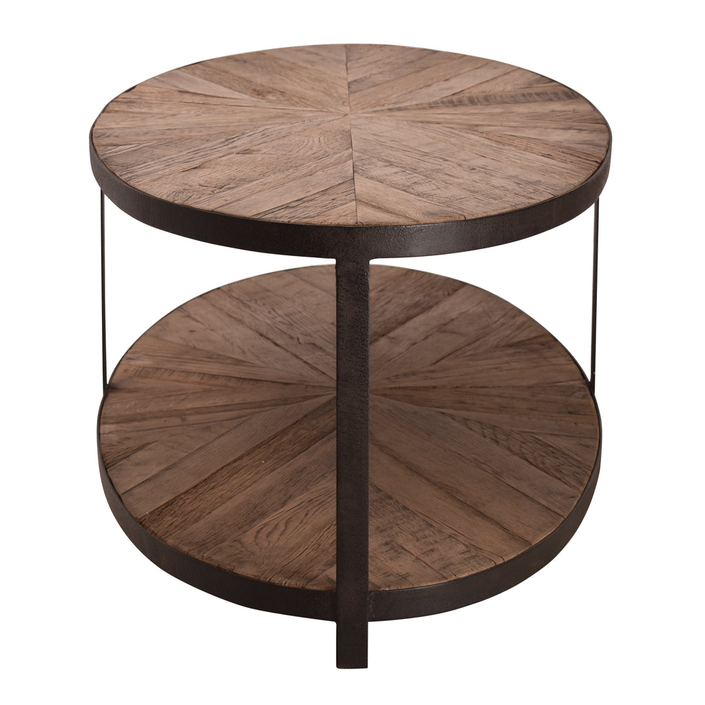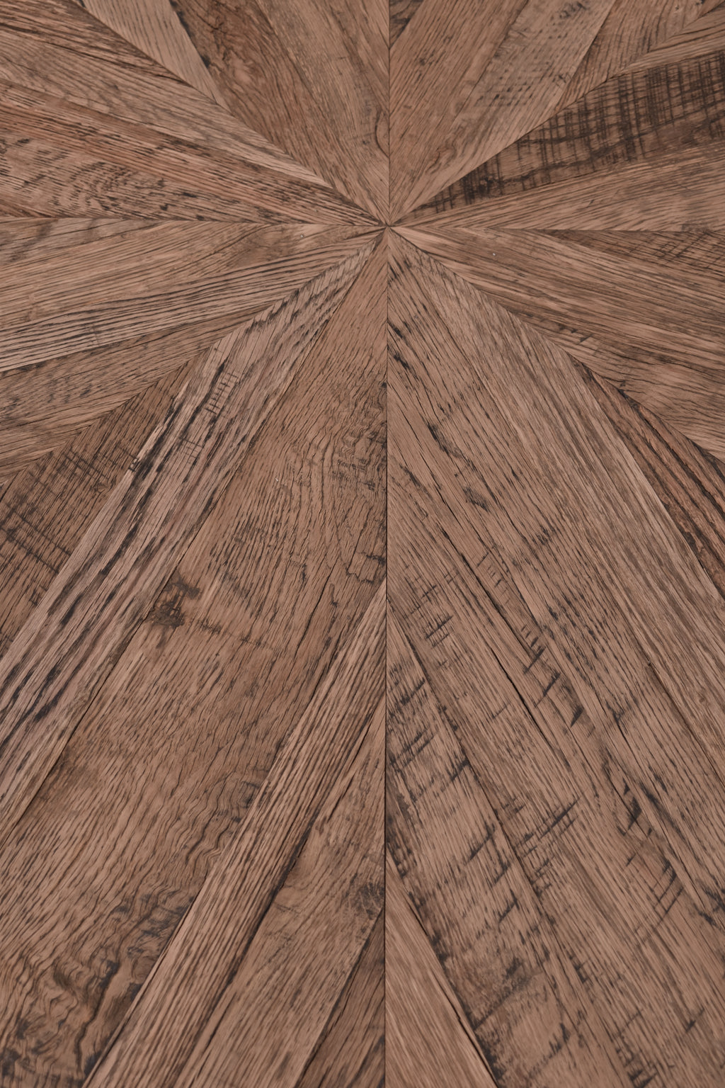 The parquet design on the top and shelf of the coffee table adds a touch of sophistication and visual interest to the piece. With its intricate patterns and meticulous craftsmanship, the parquet detailing elevates the overall aesthetic, showcasing the beauty of reclaimed elm wood in a unique way.