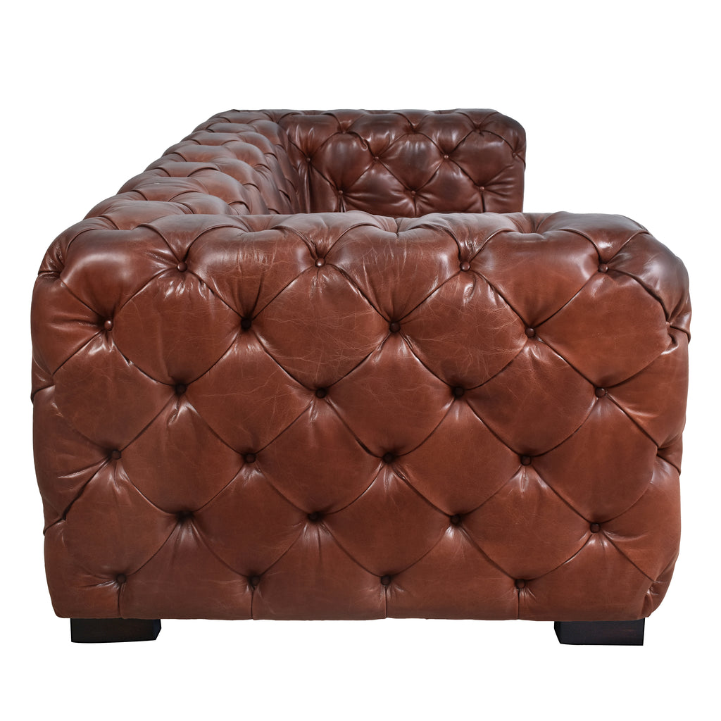 County Tufted Vintage Leather 3 Seat Sofa