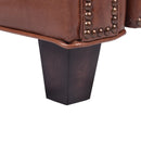 The hardwood timber feet are not just functional but also add a touch of elegance to its design. Stained in a two-tone brown color, these feet exude warmth and sophistication, complementing the rich tones of the vintage leather upholstery.