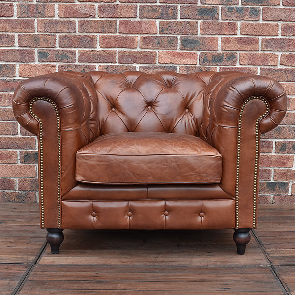 Built with a solid timber frame to last the test of time. The feet are constructed from solid Birch wood. Birch is a beautiful, hardwood timber known for having an impressive strength and durability. You can be assured that the Windsor Vintage Leather Chesterfield Armchair is constructed from the best quality materials and is a piece to be passed down from one generation to the next.