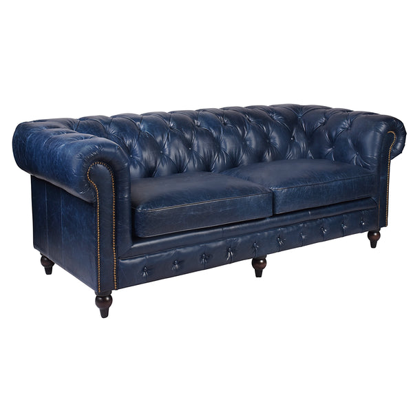 Windsor 3 Seater Blue Leather Chesterfield Sofa