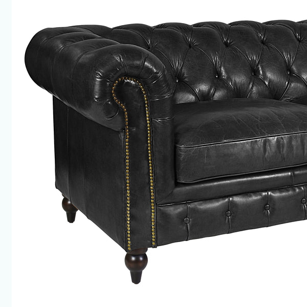 Windsor 4 Seater Black Leather Chesterfield Sofa