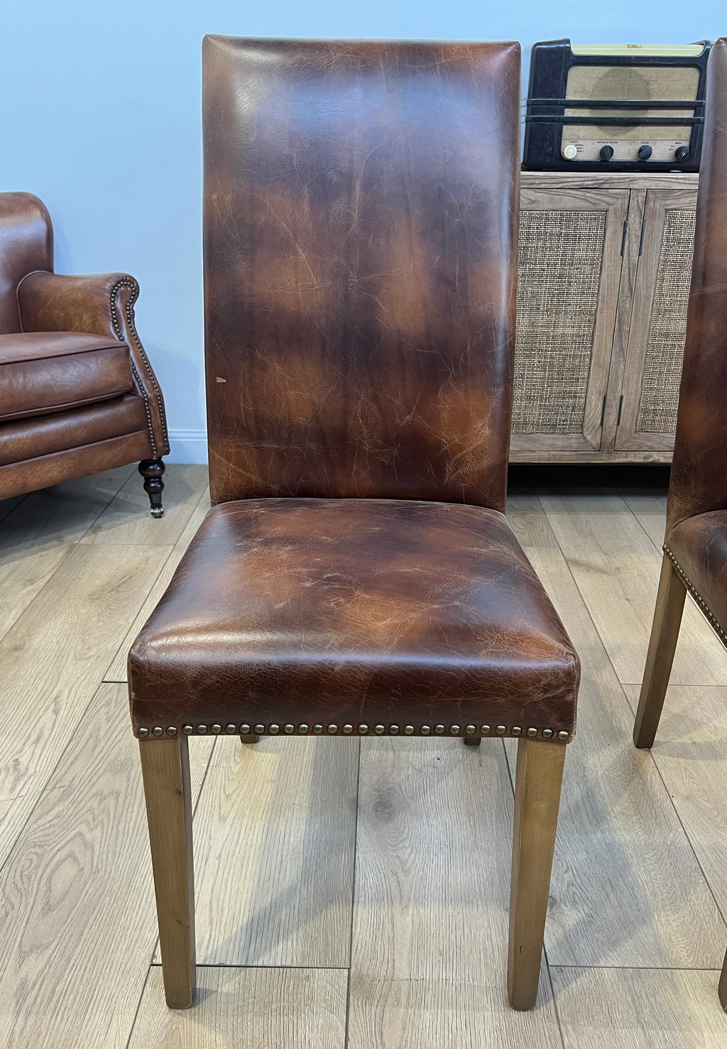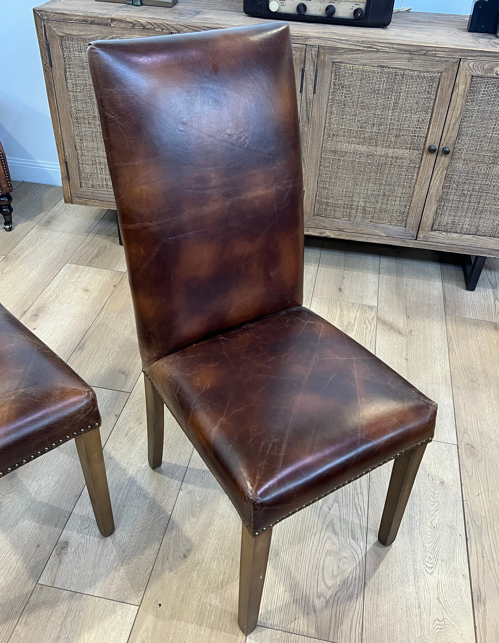 The Alfred High Back Leather Dining Chair combines vintage charm with superior comfort, making it a distinguished addition to any dining space. Upholstered in luxurious vintage top grain cowhide leather, this chair features a tall backrest that provides excellent support and a touch of sophistication. The seat and backrest are generously padded with soft foam fill, ensuring a comfortable seating experience.